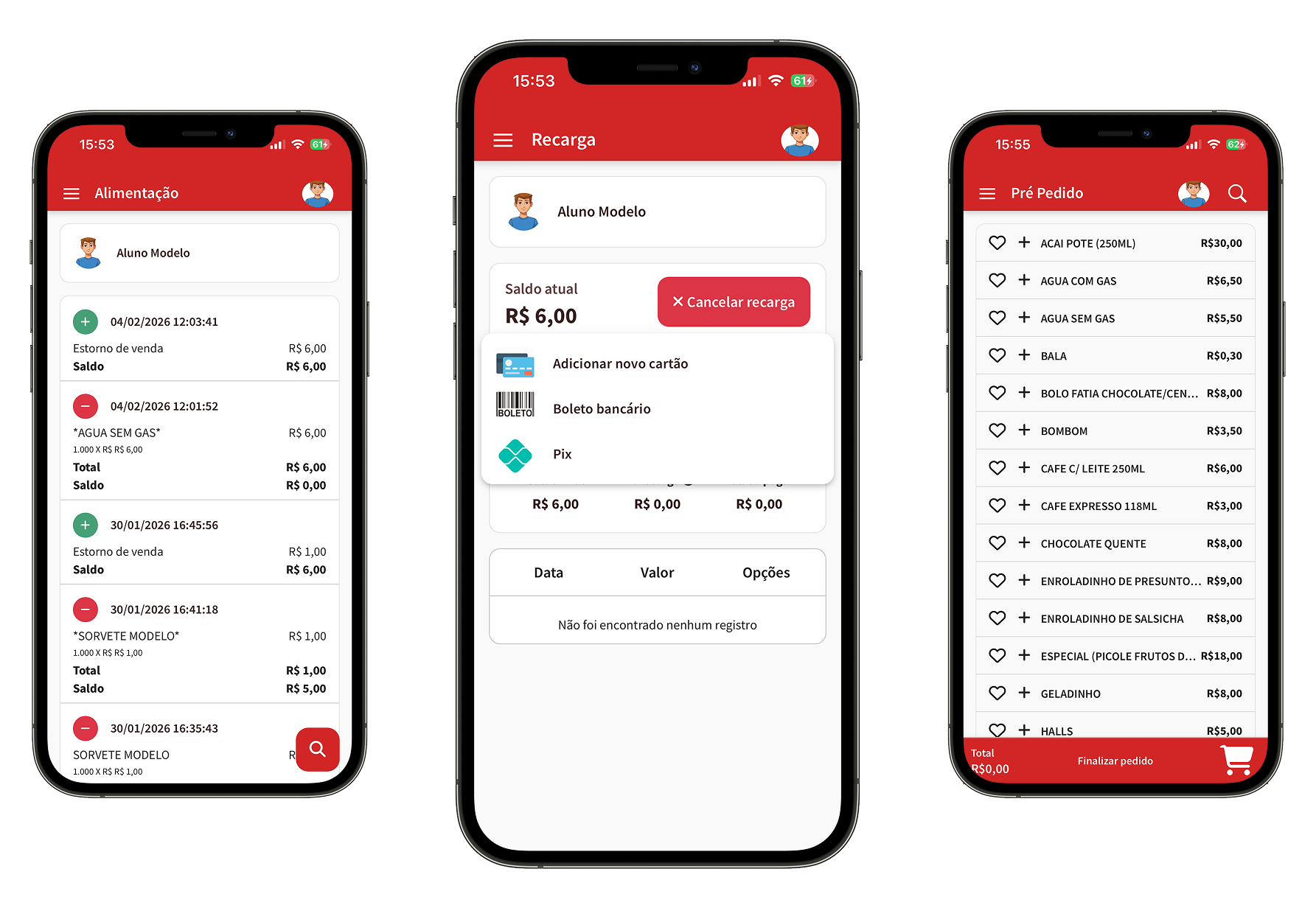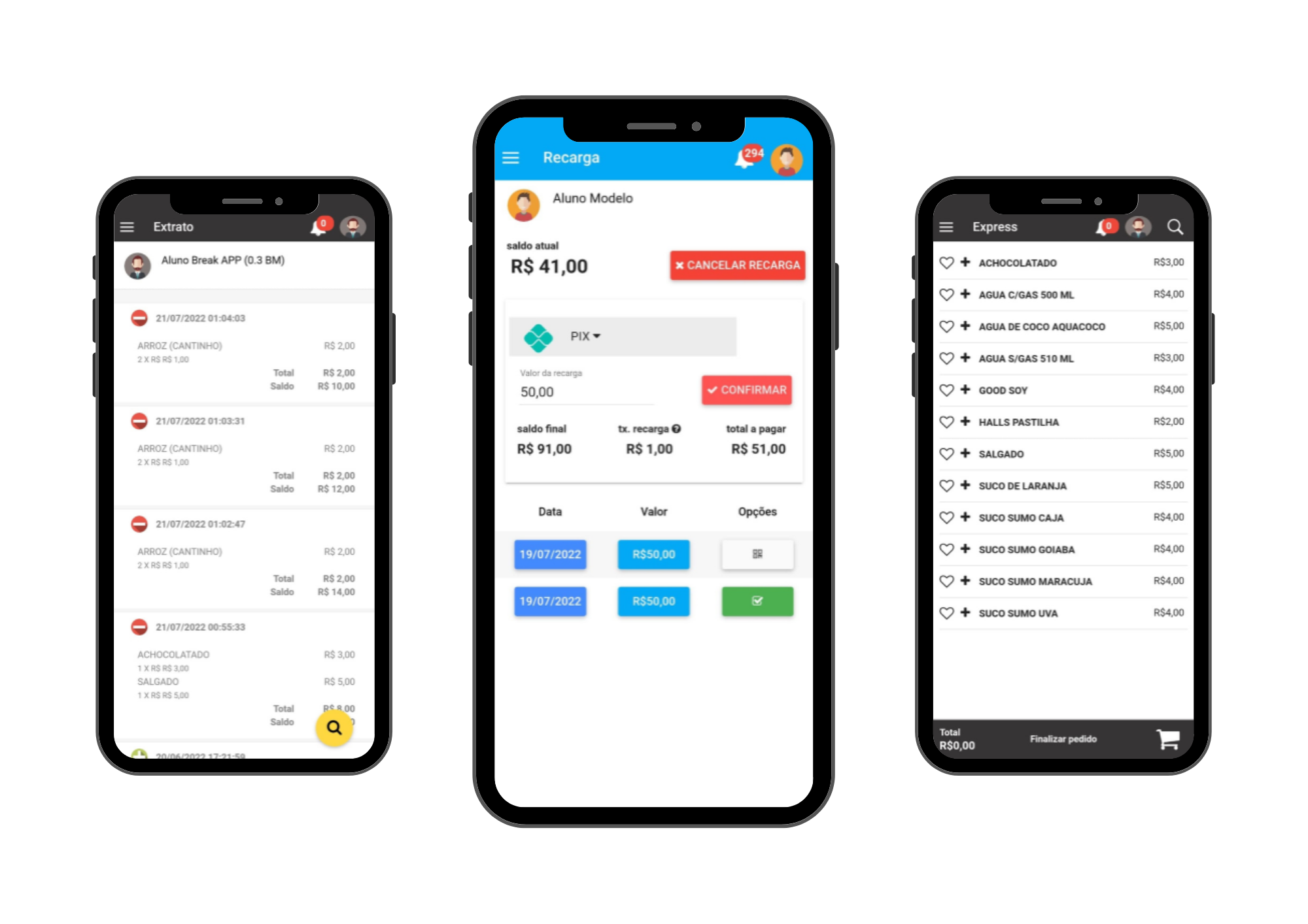 Controle de saldo, consumo e pedidos antecipados.